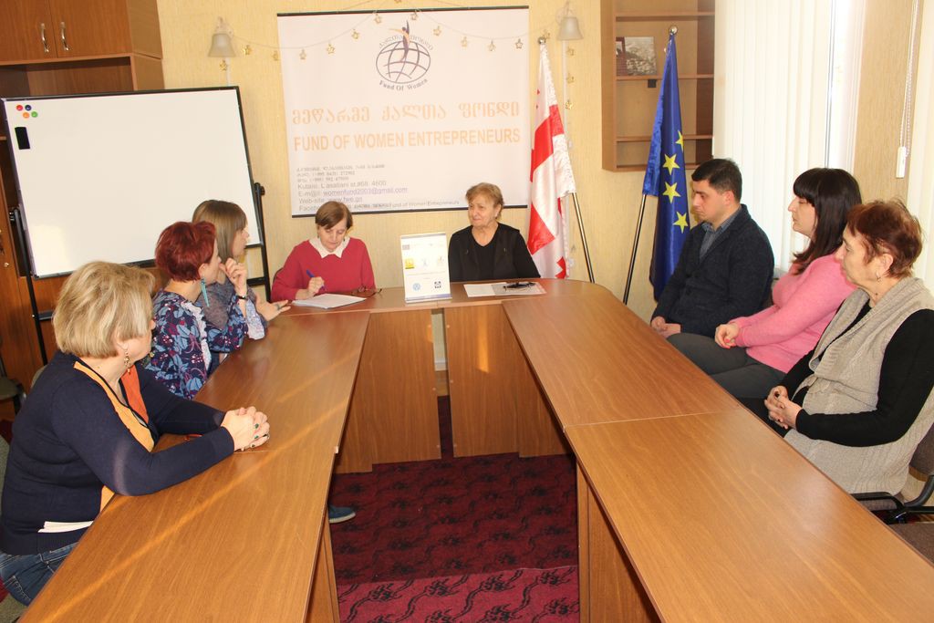 შეხვედრის მონაწილეები: Hilfswerk Austria INTERNATIONAL – ქალბატონი ელენე სმირნოვა; იძულებით გადაადგილებულ ქალთა ასოციაცია „თანხმობა“ – მანანა ლაგაზიძე (ექსპერტი); მეწარმე ქალთა ფონდის თავმჯდომარე – მერი გელაშვილი და ფონდის თანამშრომლები.