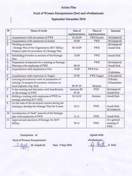 შეხვედრის დასასრულს გადაწყდა შეიქმნას მინი-პროექტი, სადაც ფორმულირებული იქნება პროფესიულ სასწავლებელ „ფაზისში” საბუღალტრო სპეციალობის 6-თვიან კურსებზე სწავლების საკითხი. ურთიერთთანამშრომლობის მემორანდუმზე ხელმოწერა მაისის დასაწყისში დაიგეგმა. ყველა ის საკითხი, რაც მემორანდუმში გათვალისწინდება, განხილვის პროცესშია.
